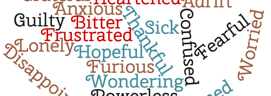 I read somewhere once that feelings are like toddlers: they have to be acknowledged and they aren’t very good at waiting. For the past few weeks I’ve tried to put off my feelings by saying “Just a minute!” or “Not right now!” or “I’m busy, come back later!” This stalling strategy can only work so long before, like a toddler, my feelings explode – maybe in a panic attack, maybe in a debilitating migraine. The longer I put them off, the louder they call for my attention – and the more furious they become.