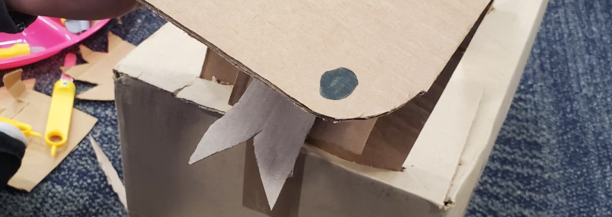This program was so popular, I’m pondering all the opportunities for it to make a repeat appearance. It’d be a great green/upcycle program for Earth Day in April. The CSLP summer reading theme this year is All Together Now – maybe we’ll build a big box neighborhood? I’d also like to do this again with the cool 3D print hinges you can grab from Thingverse!