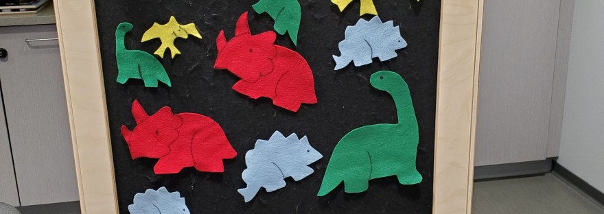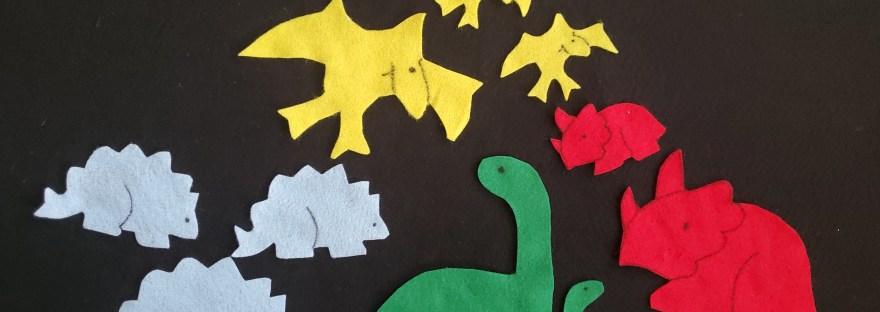 I recently gave an old favorite flannel a new early math makeover! Like the five little ducks, these dinosaurs go out to play. I first learned this song (and picked up the pattern) from Melissa over at Mel's Desk: Flannelboard: Felt dinosaurs of various sizes, colors and types, including: stegosaurus, triceratops, pterodactyl and brontosaurus. One… Continue reading Flannel Friday: Dinosaurs Early Math Makeover